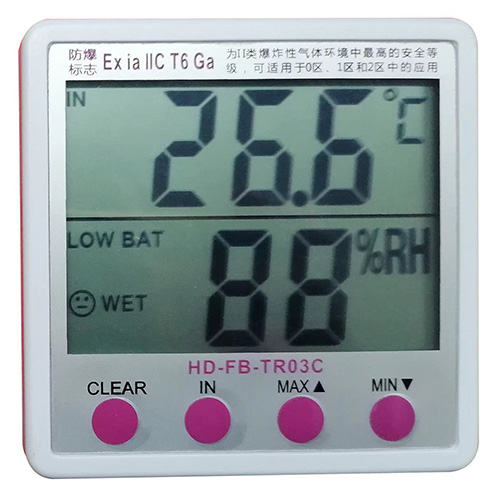 ●HD-FBME-TR03C、HD-FBME-TR03C-232、HD-FBME-TR03C-485系列本安型防爆工業溫濕度記錄儀和本安型防爆工業溫濕度變送器,防爆等級:Ex iaⅡC T5-T6 Ga;防爆證書:(正在認證過程中),上述三種產品獲實用新型專利號:CN 222231728 U 和發(fā)明專利號:CN 117723113 A保護。